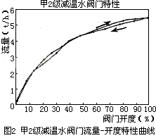 由运行人员操作,将减温水调节阀由0逐渐打开,每10%左右停顿一次,到100%后再按照原方法逐渐关小阀门,DRA数据采集器采集实时数据(阀门开度和减温水流量),计算机读取数据。
